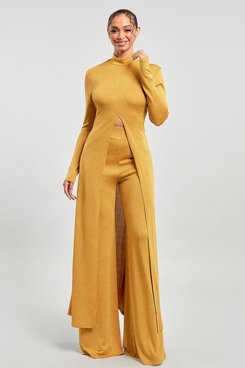 If your looking for a head turner our Falling For You two piece set is it. This mock neck cape is paired with wide legs pants with pockets. Comes in a beautiful mustard color. Perfect for date night or a party. Add this beauty to your cart!! You want be disappointed.