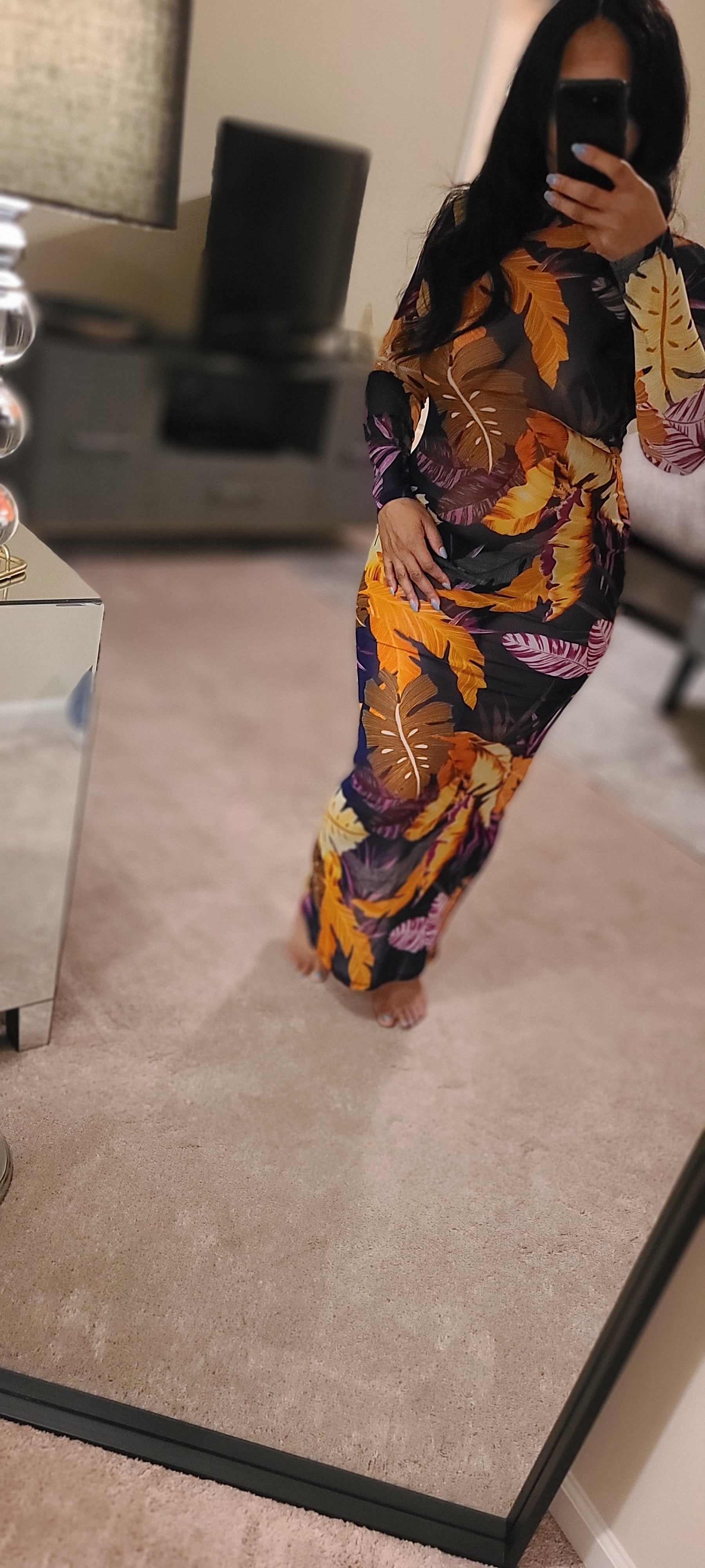 Our Island Girl Sheer Maxi dress is a vacation must have featuring long sleeves with a plunging open back in a beautiful tropical print. This beauty is sexy, seductive, and daring. She can be worn as a cover-up or dress. Trust me and add this beauty to your cart!!