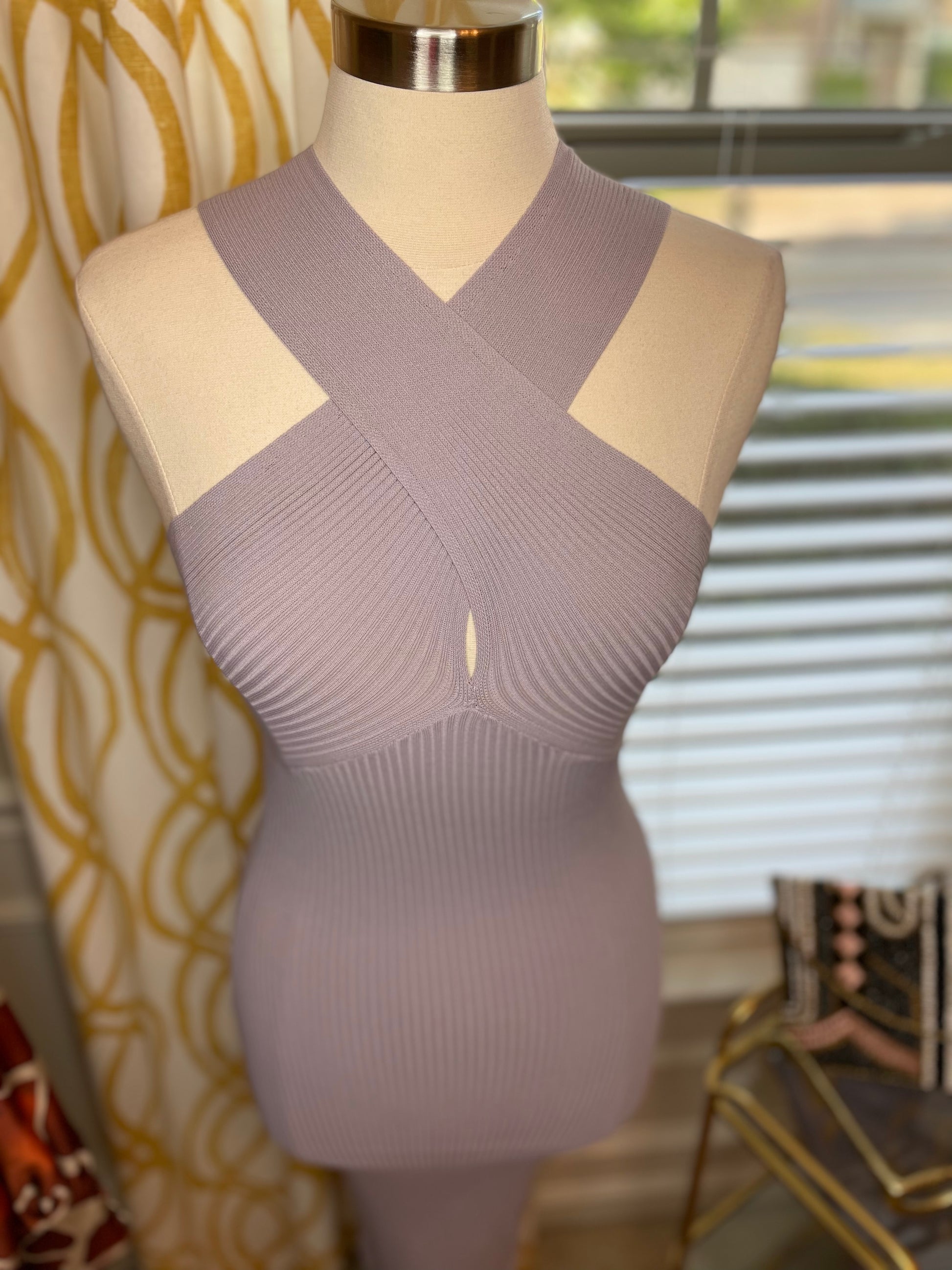 Classic, Elegant and Beautiful!!! Three perfect words to describe our Lavender Dreams Midi Ribbed Dress. This dress is great for date night or a wedding. The cross over halter neck gives some extra added sex appeal.