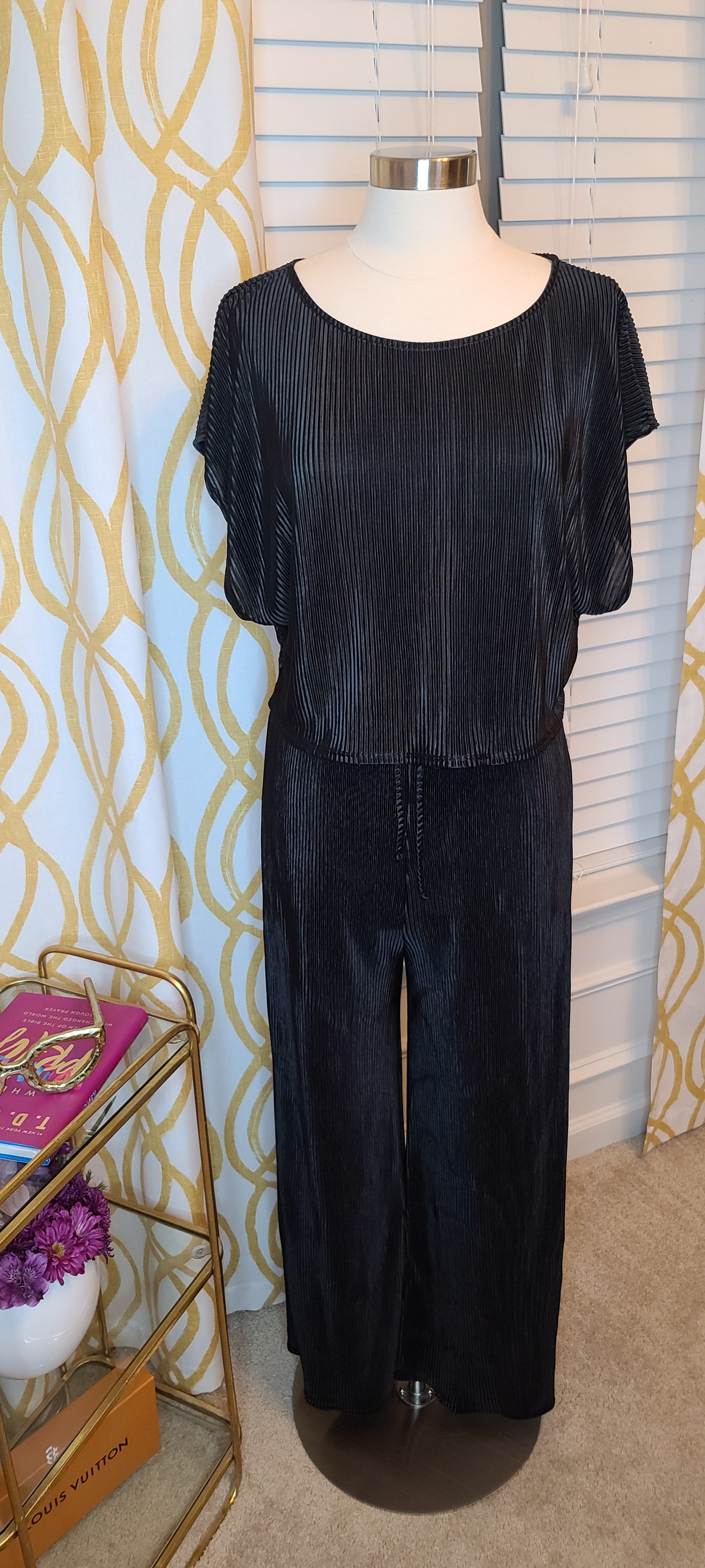 High Waisted Ribbed Wide Leg Satin Pants With Satin Ribbed Cropped Short Dolman Sleeve Top